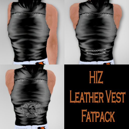 First is a leather vest. This vest comes on the jacket layer, and each comes with two versions: open and closed. It is available plain, with a chains detail at the back, and with a maltese cross detail at the back, and is only $75L. Enjoy!